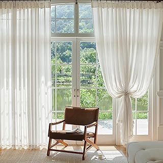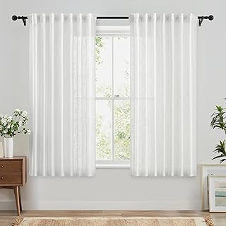 Fmfunctex White Pencil Pleat Sheer Curtains for Bedroom 54 Drop Linen Textured E..
