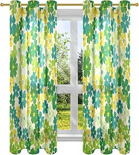 sanluoli Small Flowers Green Yellow Linen Blackout Curtains Window for Bedroom S..